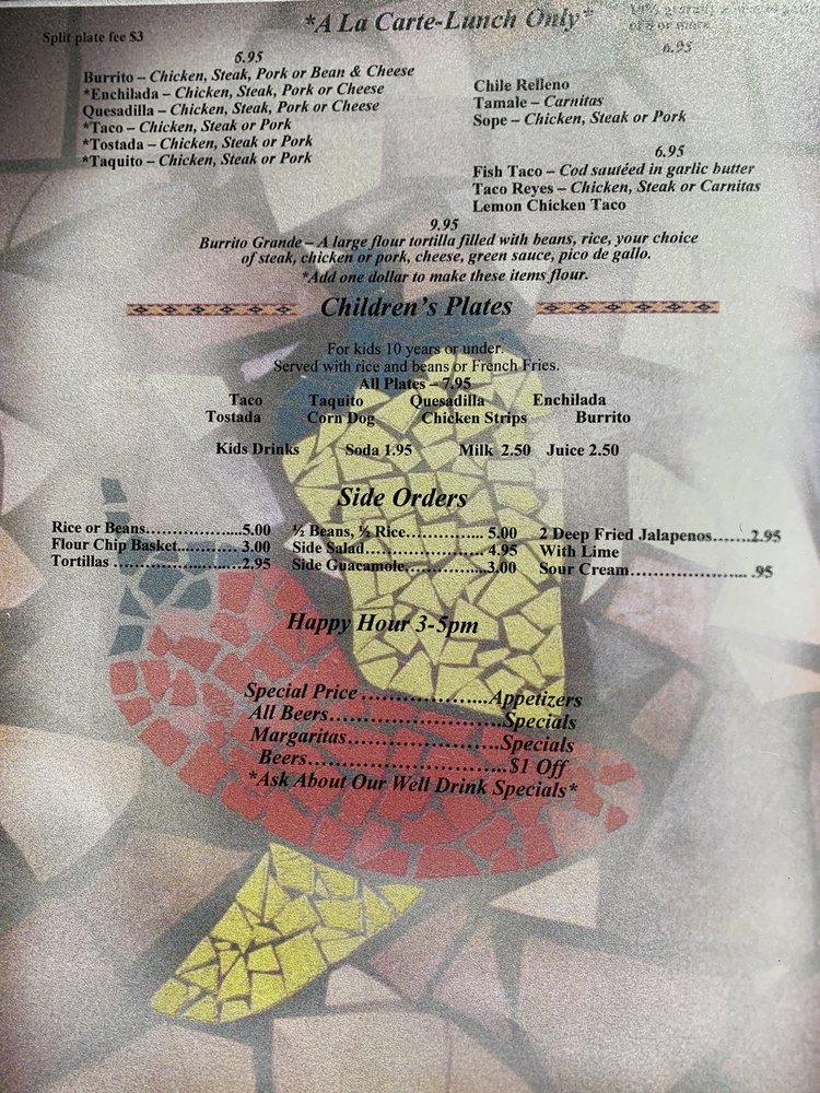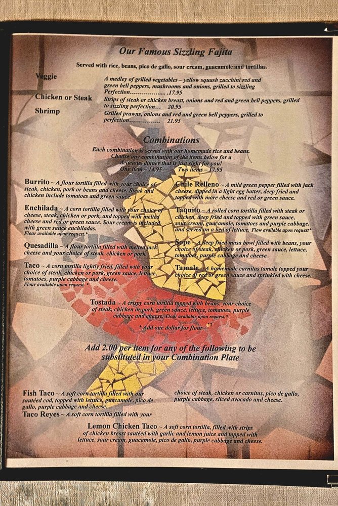 A soft corn tortilla, filled with strips of chicken breast sauteed with garlic and lemon juice and topped with lettuce, sour cream, guacamole, pico de gallo, purple cabbage and cheese. Add $1 to be substituted in your Combination Plate