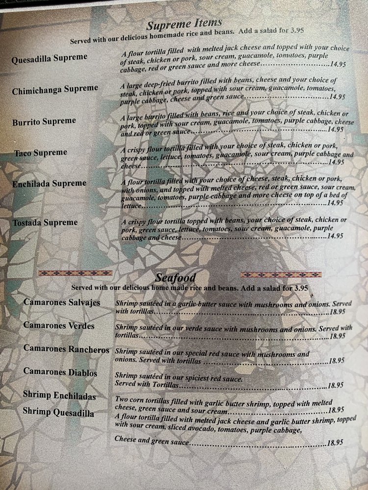 A came asada, a polio a la parilla and your choice of shrimp (salvajes, verdes, rancheros or diablos). Served with tortillas